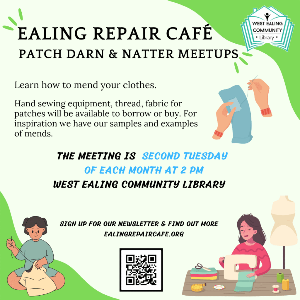 🧵✨ Join our Ealing Repair Café for Patch, Darn & Natter meetups!✨🧵