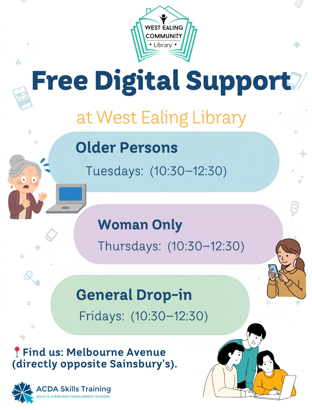 Whether it’s mastering your smartphone or tackling a laptop, join us at West Ealing Community Library for our weekly sessions:
